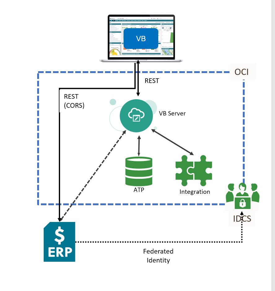 • Local business objects (Oracle VBS comes with a small DB of 5GB or you can associate it to a Autonomous DB for large scale database deployments)