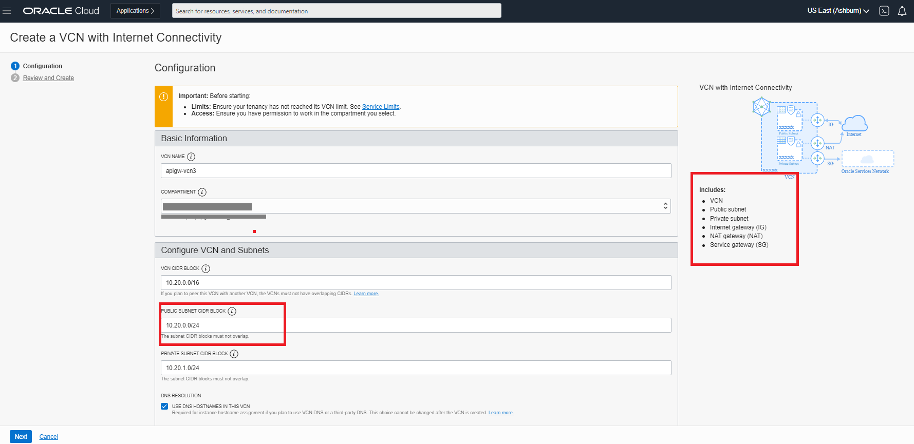 For simplicity, let us create the VCN using the VCN Wizard. Choose to create a “VCN with Internet connectivity”