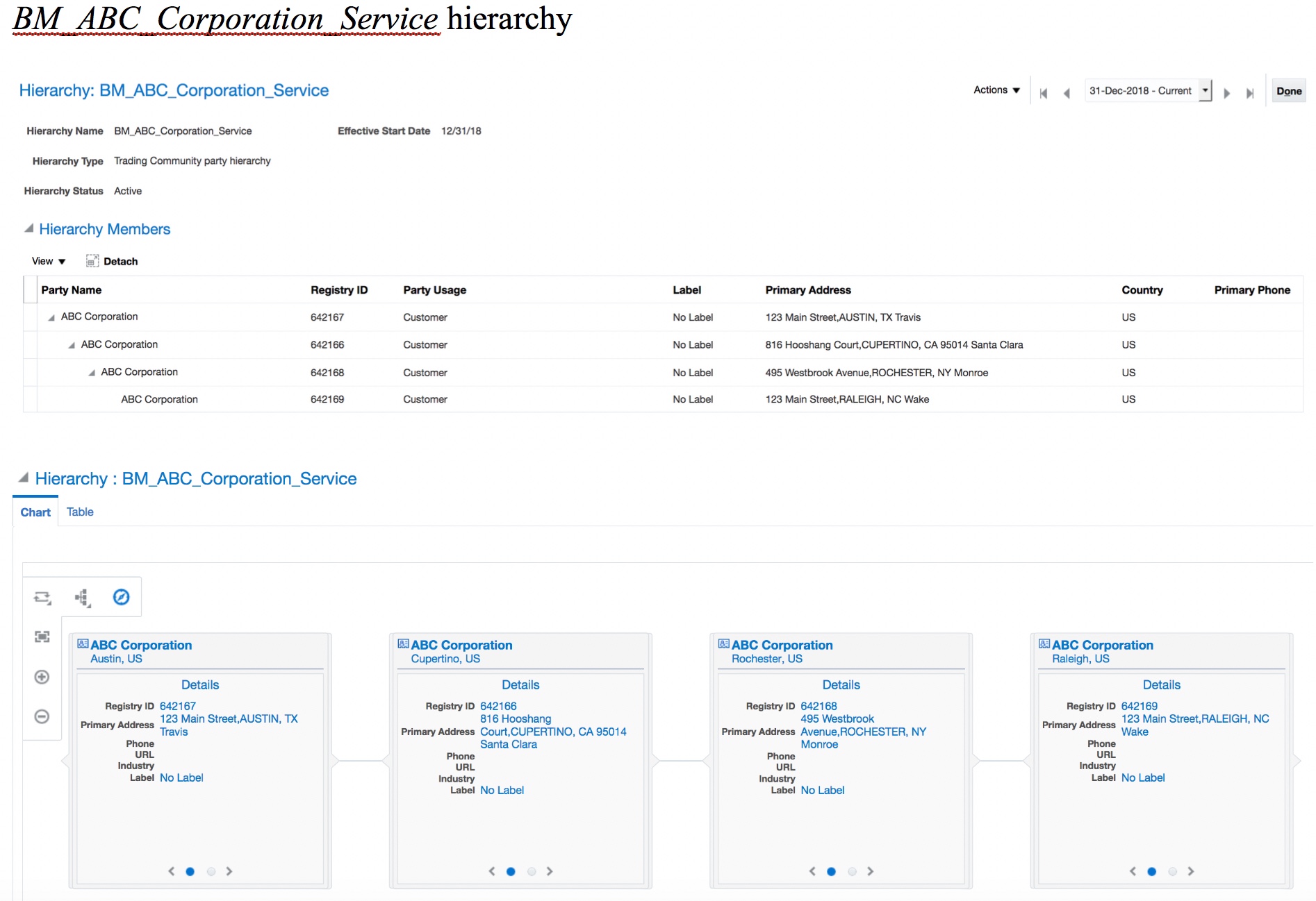 You can create two hierarchies, one for Sales team (“BM_ABC_Corporation_Sales”), and another one for Service team (“BM_ABC_Corporation_Service”). These hierarchies can co-exist as well. Note that, how you are leveraging these hierarchies for downstream and other business processes is up to the corresponding business requirement. Only the hierarchies are defined and managed within Oracle Fusion Cloud. These hierarchies can be exported and passed on to other applications as needed.