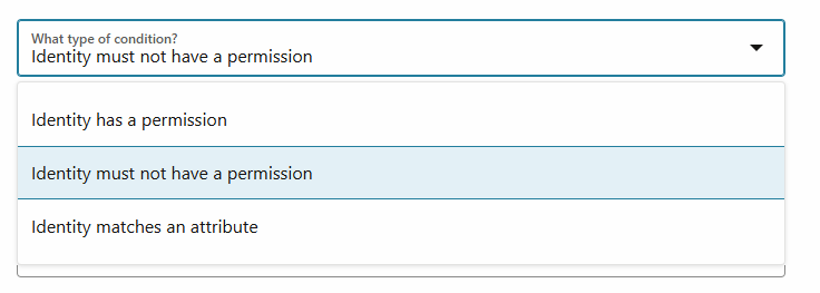 - The administrator then selects the systems, roles, and permissions associated with the condition.