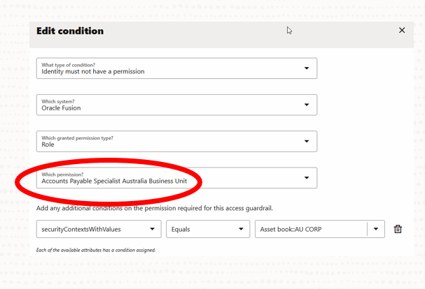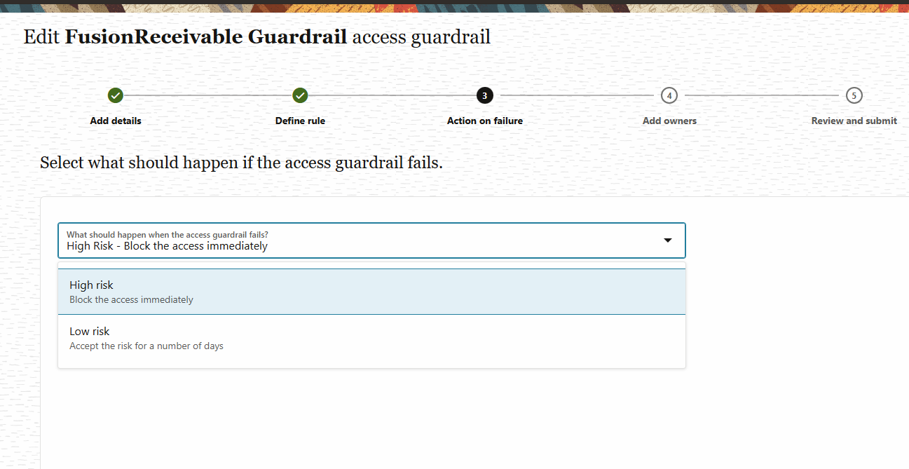 - Lastly, the Access Guardrails can be associated with an Access Bundle. For example, an Access Bundle with receivables permission may block access if the user already has Payables permission, as defined by the FusionReceivable Guardrail which checked for Account Payable permission.