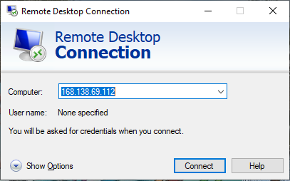 Use Remote Desktop Connection to connect to the instance. The public IP address is 168.138.69.112.