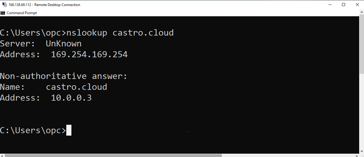 In addition, run nslookup on castro.cloud from this Windows instance.