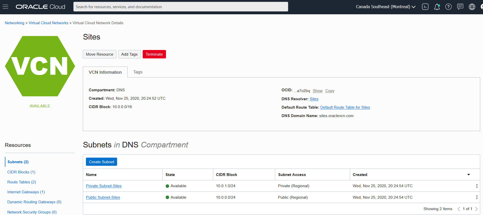 Oracle recently introduced private DNS services as a new feature for Oracle Cloud Infrastructure (OCI). Private DNS lets you access DNS data from resources inside a virtual cloud network (VCN).