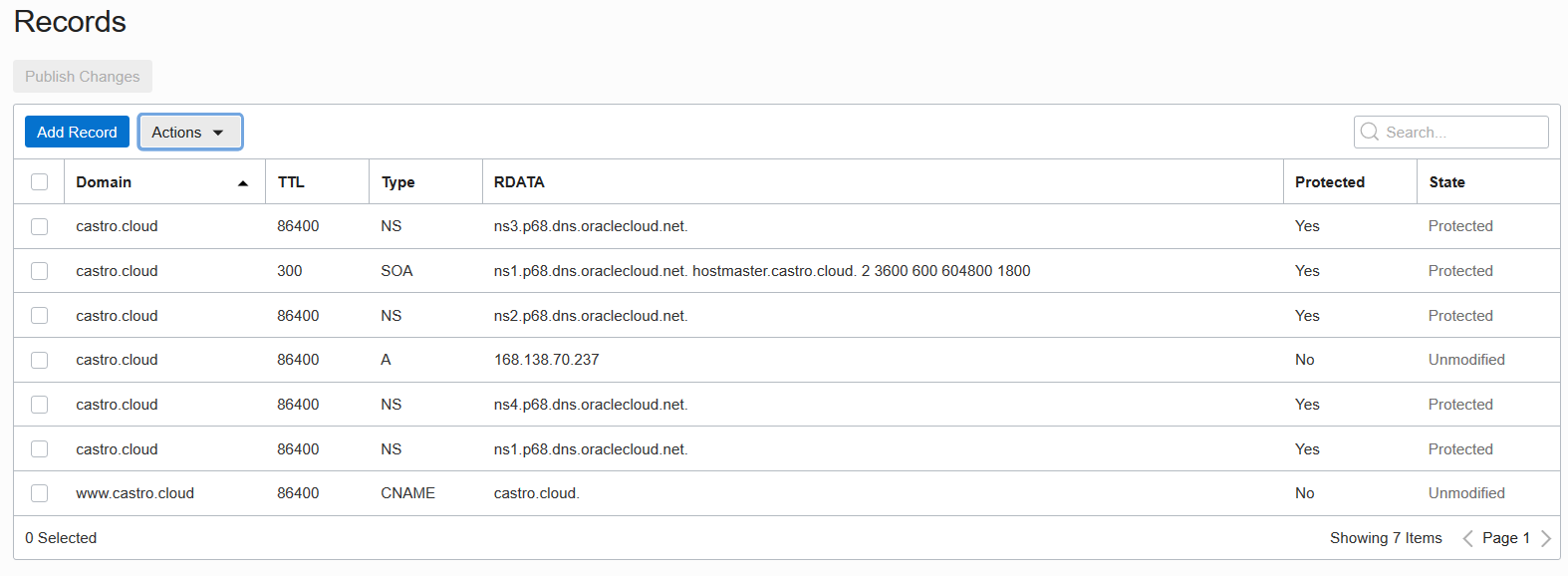 The public IP address for the A record in castro.cloud is now 168.138.70.237. Everything else remains as configured in the previous post.