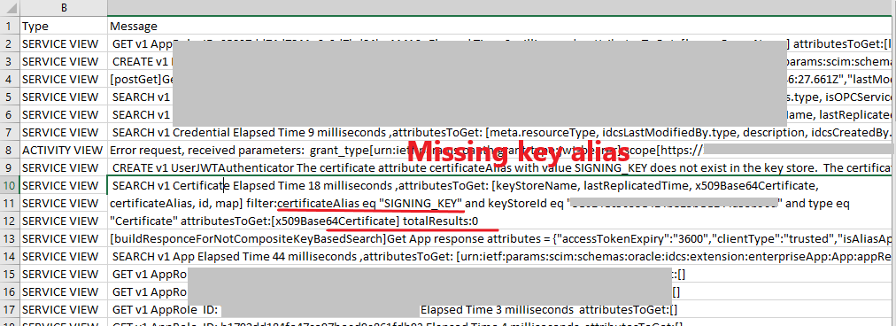 I found the following error in my downloaded csv file when I did not set the “kid” attribute in the JWT header.