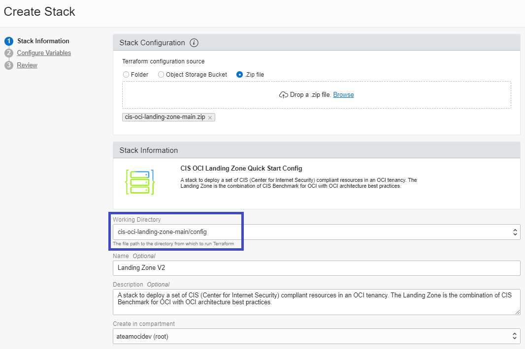 When creating the Resource Manager Stack, make sure to select the config folder in the Working Directory dropdown box: