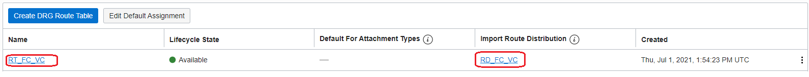 2.2 On the DRGv2 create a Route Import, attach the Route Import to a new created Route Table, attach the Route Table to VCN 1 attachment