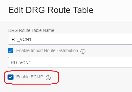 We want to enable the ECMP on the Route Table for VCN 1 attachment, so probably this is due to the fact that ECMP is not enabled for this Route Table? Remember, ECMP is disabled by default and can be enabled per DRG VCN attachment route table basis. As per the above statement, ECMP takes into consideration the routes with the same CIDR and with equal BGP AS_PATH.