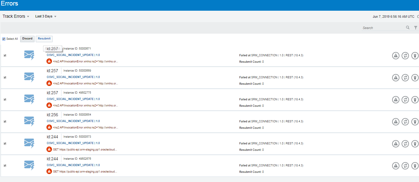 Synchronous flow instances when seen from OIC monitoring will not show the “resubmit” or “discard” actions.