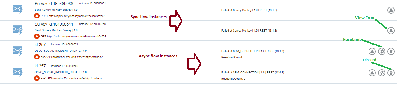 On the other hand, asynchronous flow instances can be resubmitted in the event of failure. Such faulted instances are available for resubmit during the retention period in OIC,