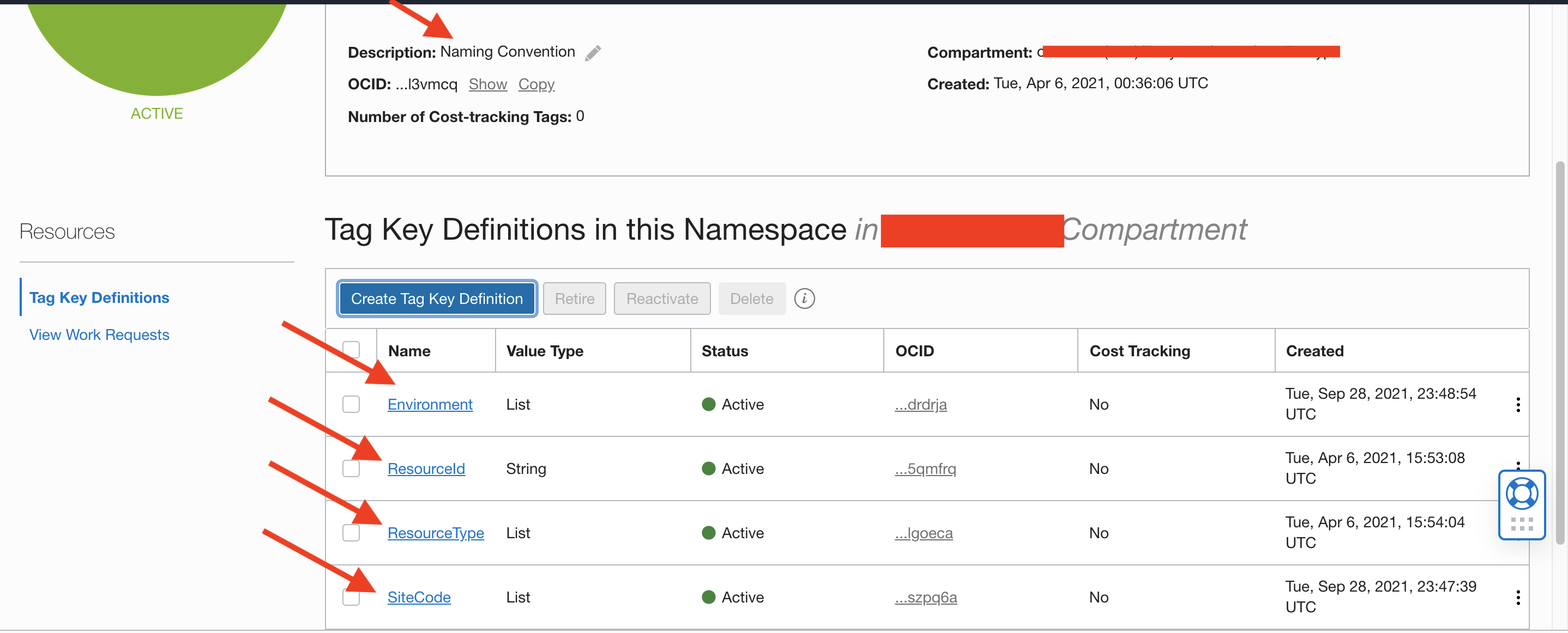 To achieve adherence to the above naming convention, tag namespaces with predefined values and default tags can be used. To start with, create a Tag Namespace in the root compartment and give a name to it say, “Naming Convention”.