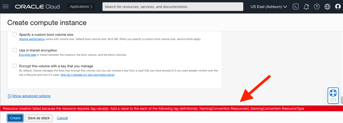 The above compute instance complies with the naming convention: <us-oci-ash, test, compute, 01>.