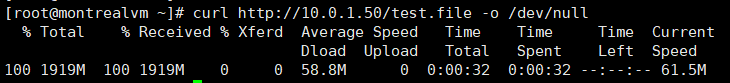 MTU has a huge impact on performance. All the tests we did so far were on MTU 9000 on the endpoints and on the network between the endpoints. All these theories and formulas are no longer relevant if the endpoints will have to split the packets into small chunks to accommodate a 1460 MSS/1500 MTU. And to see the impact, let’s see what IPERF and CURL look like on a 1500 MTU network. The TCP window is 24500000 so we have a theoretical speed of 1Gbps per stream.