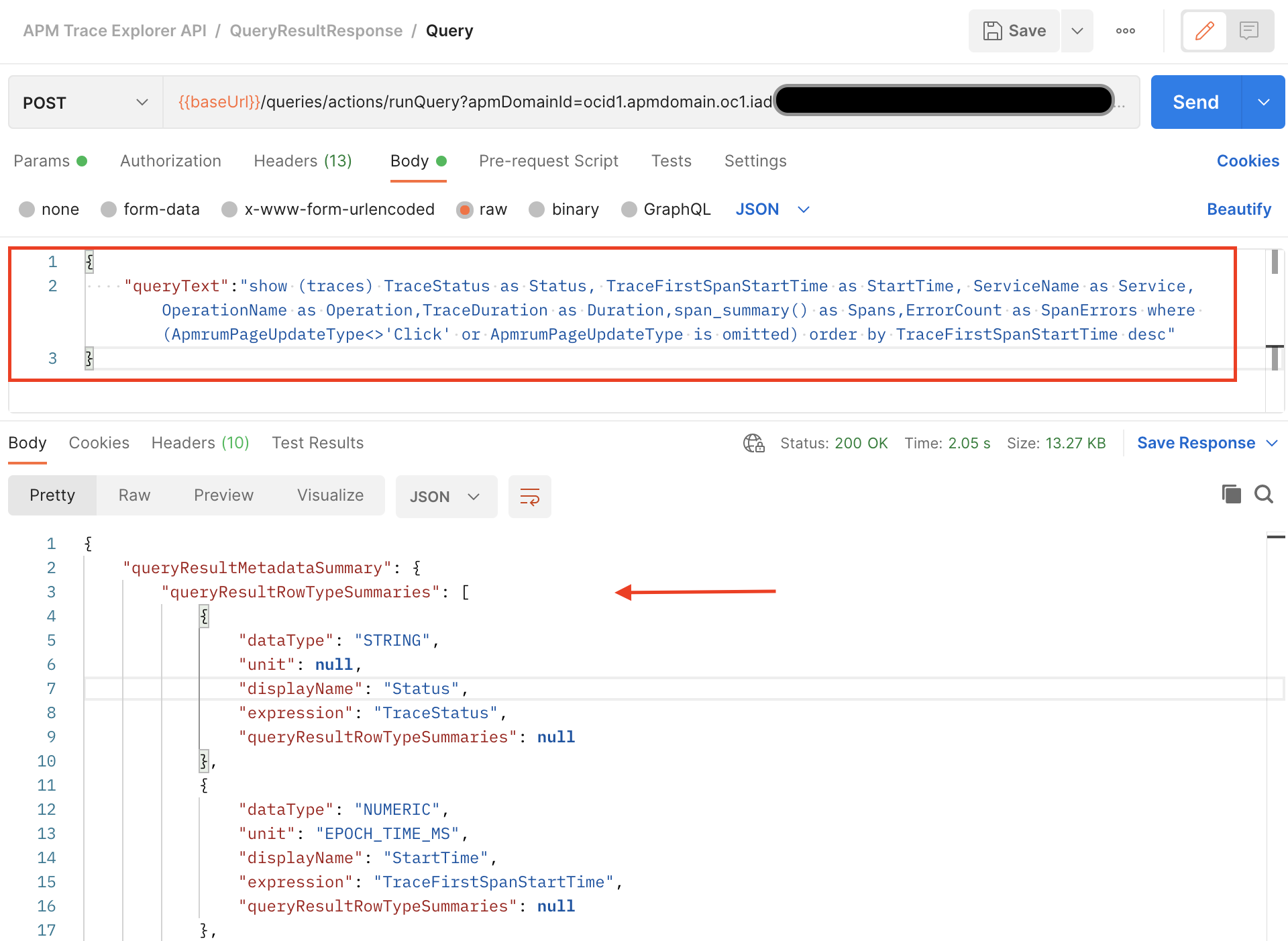 Fig. 7. OCI APM Trace Explorer REST API Execution