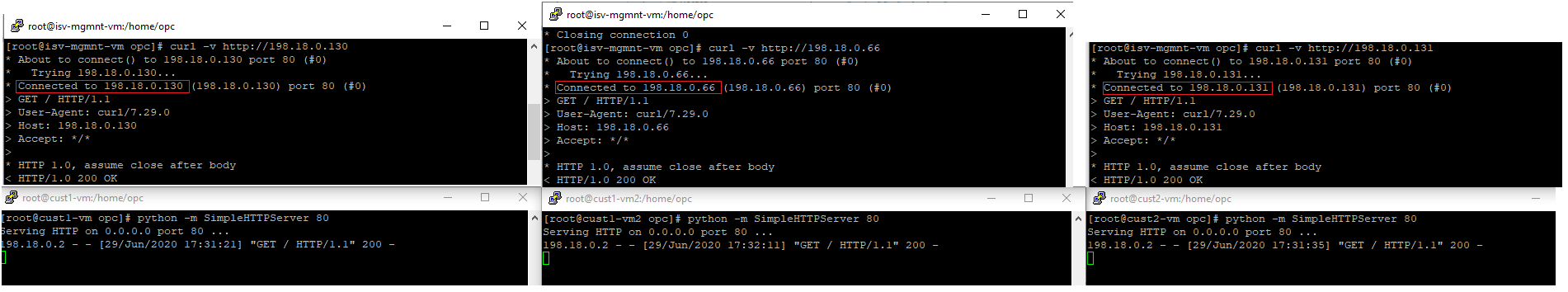 5.2 HTTP traffic from Customer 1 VM1 and VM2 + Customer 2 VM2 toward ISV Mgmt Server
