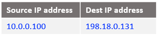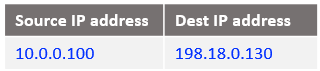 In order for the traffic from Mgmt Server (10.0.0.100) to work, we need to send it to an IP destination address different than 10.0.0.100 (assigned to the VM1 as well). The destination IP address used will be 198.18.0.130. This IP address is assigned to the NAT VM2 vnic.