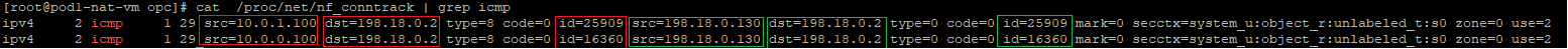 Now, we have two different hosts talking to the Mgmt Server, let’s check how the nf_conntrack is looking for icmp:
