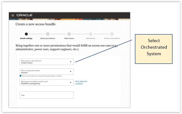 - Select the orchestrated system (e.g., Oracle Fusion system).