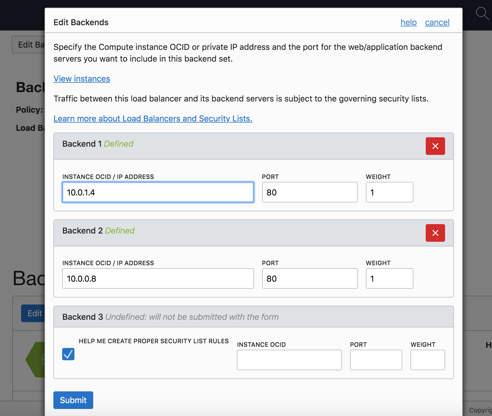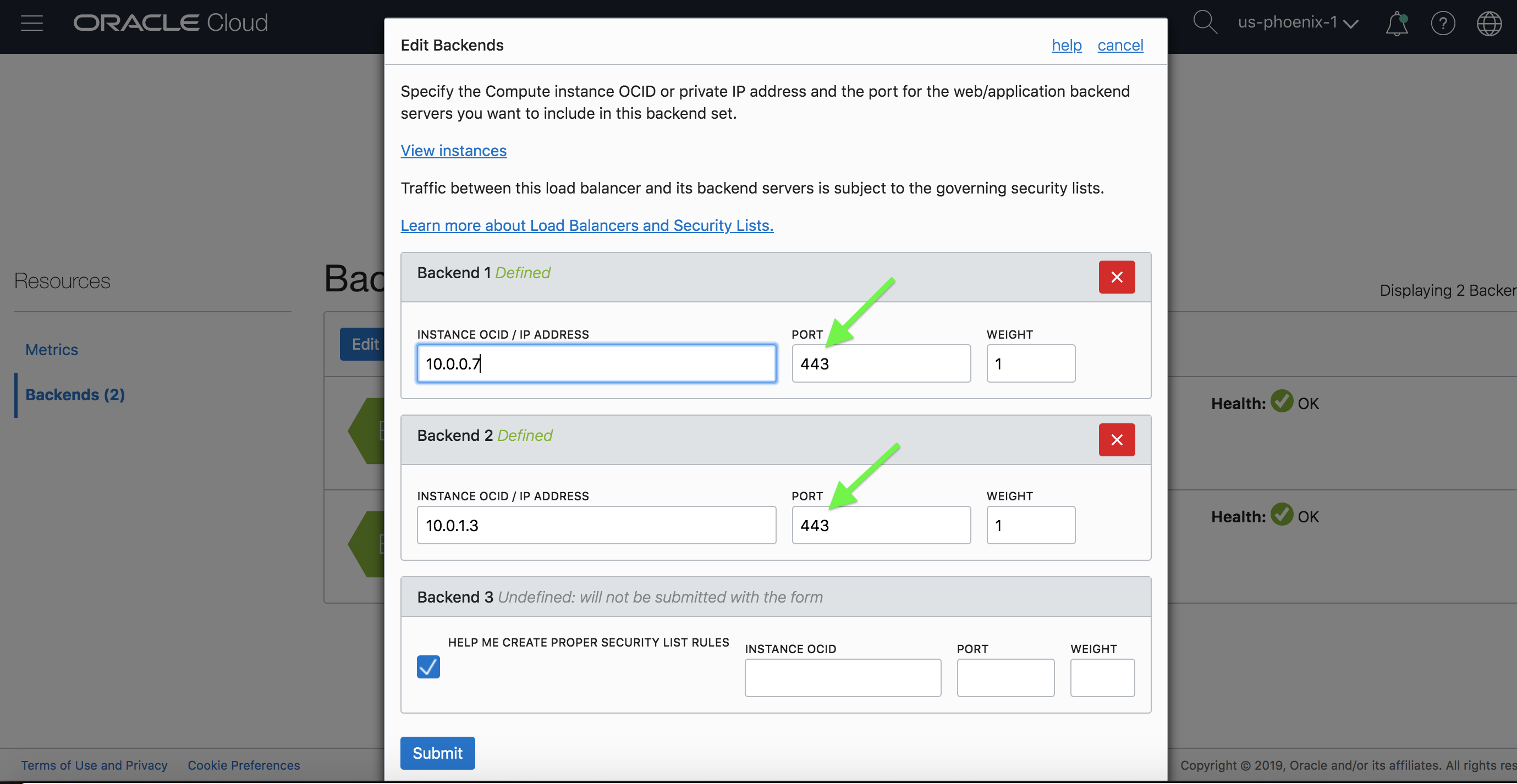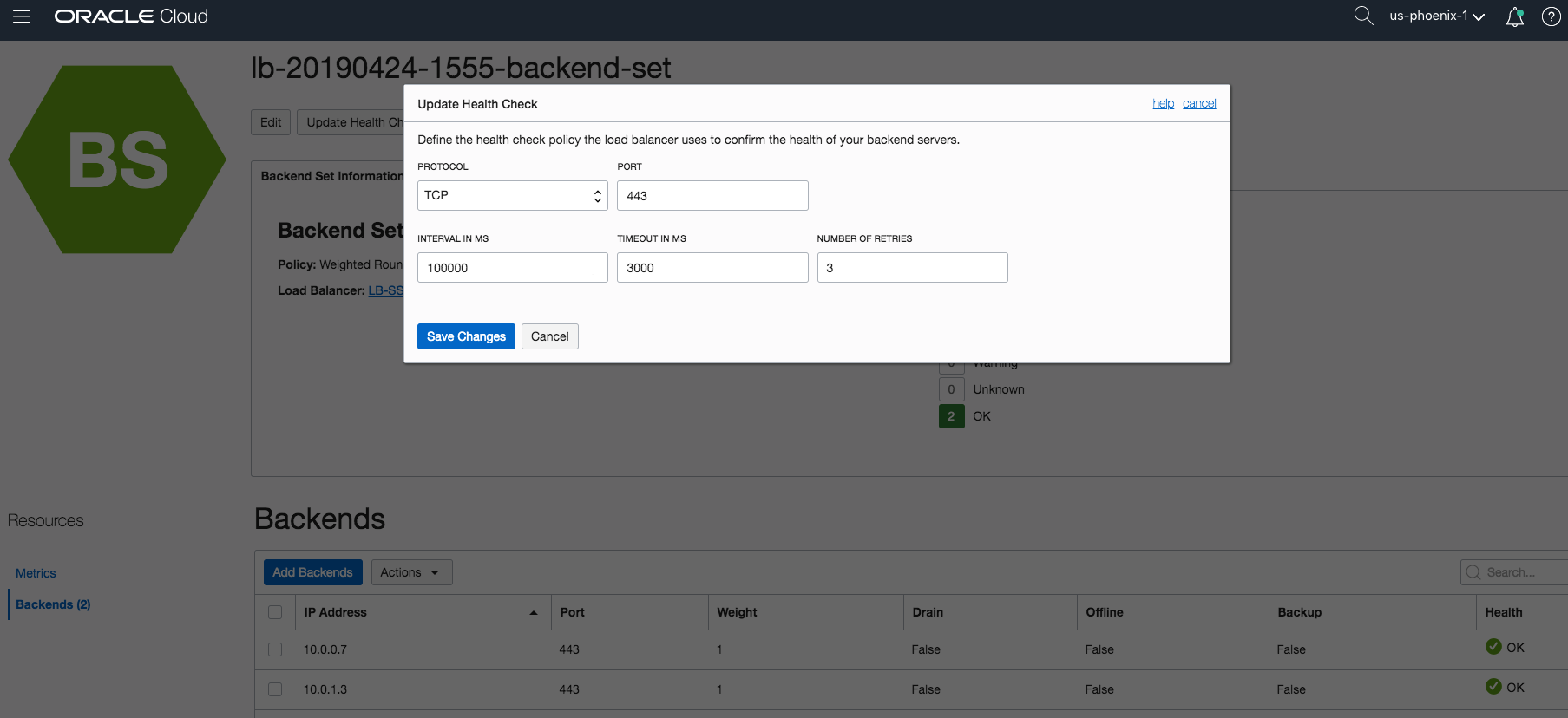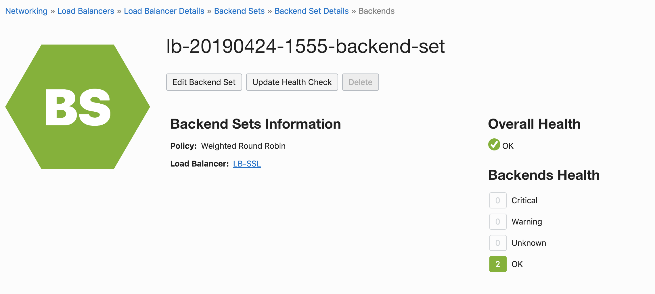 After configuring the two Backends, I define a Backend Set and add them to this set.