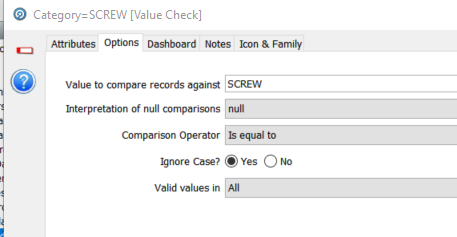 The next processor is a simple value check to split the data into the ‘SCREW’ category and to ignore everything else. The configuration of the value check is: