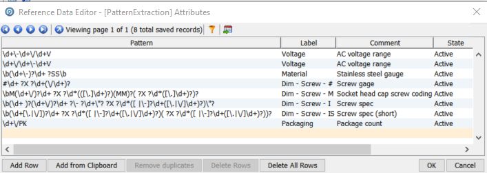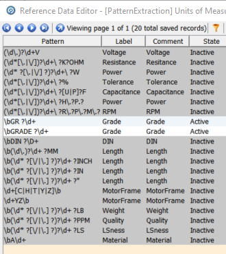 The reference data driving this processor is a regular expression table which allows us to simply but precisely define the patterns which represent attribute data:
