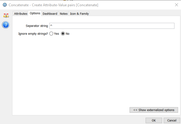 To achieve this we use a simple ‘Concatenate’ processor. In the previous step we generate the split single entry version of both the attributes and their values. Now we want to concatenate the ‘AttributeArray.Split’ and ‘ValueArray.Split’ values using a delimiter of our choice into the default output field for the ‘Concatenate’ processor, ‘concat’:
