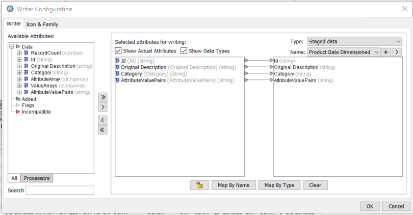 The EDQ repository has a results schema which can be used to store data for inter process and inter job persistence. The ‘Writer’ processor takes the working data from a process and writes it out to a staging table: