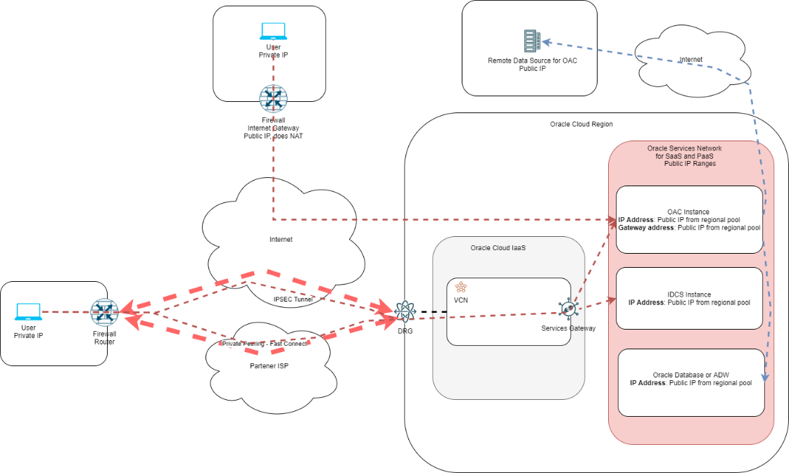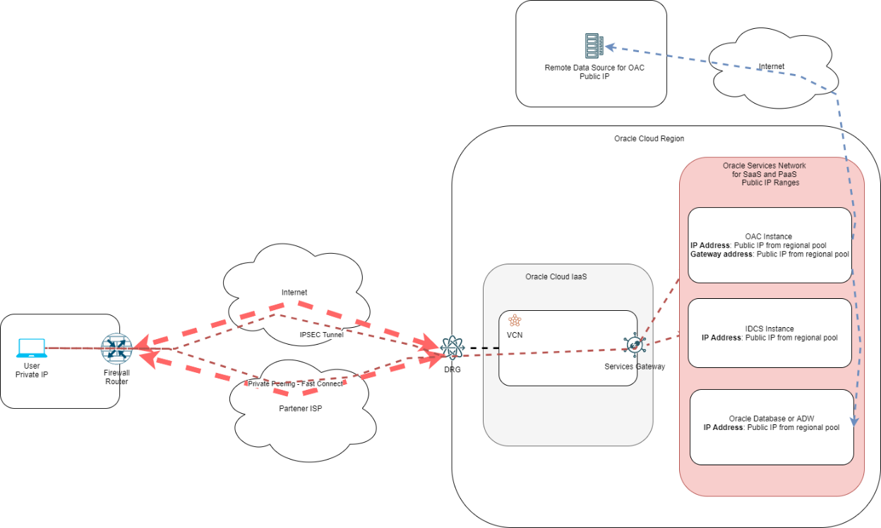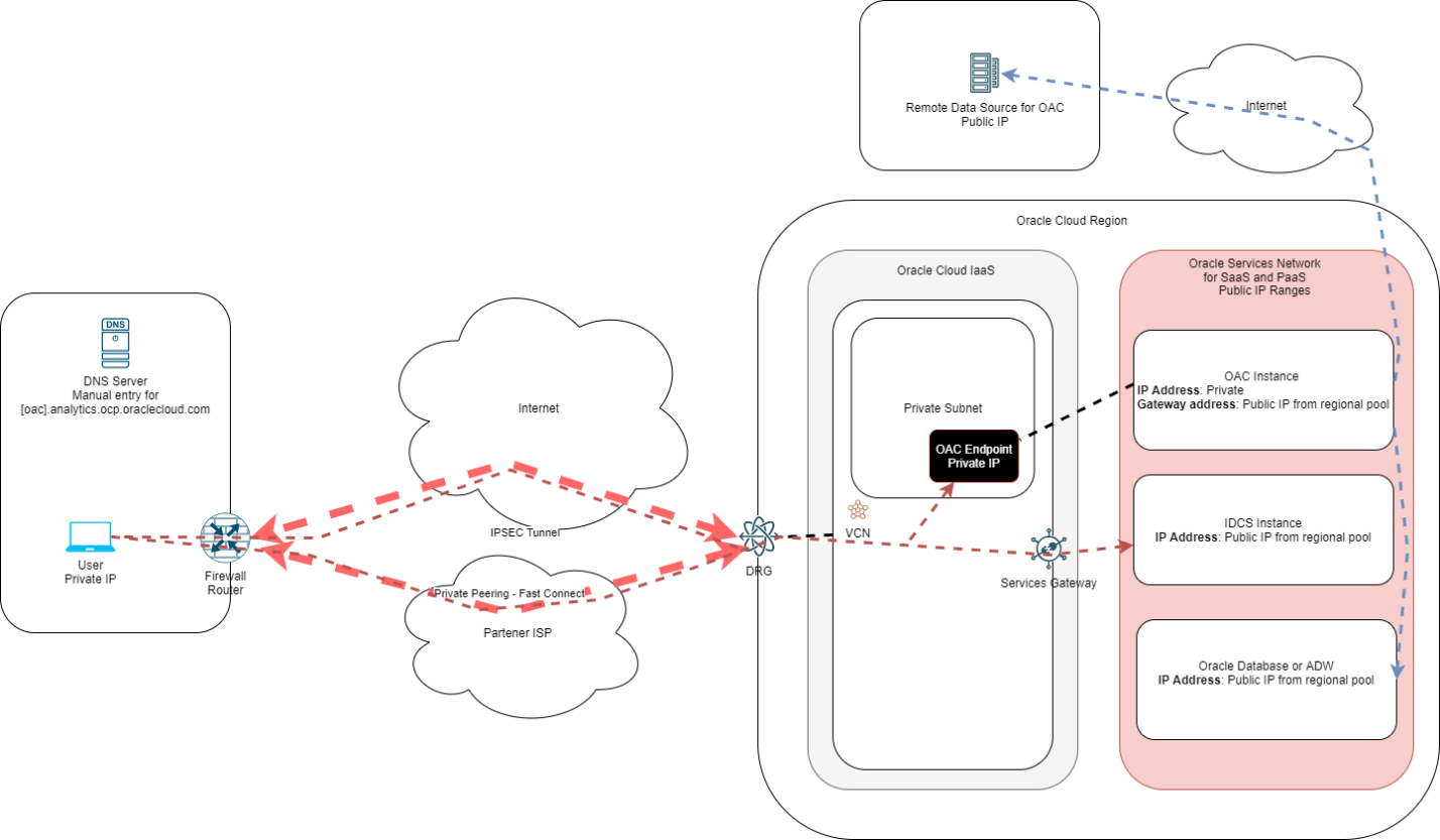 - This scenario is focused on user access to the OAC instance. The connectivity between OAC and its data sources remains over the Public Internet.