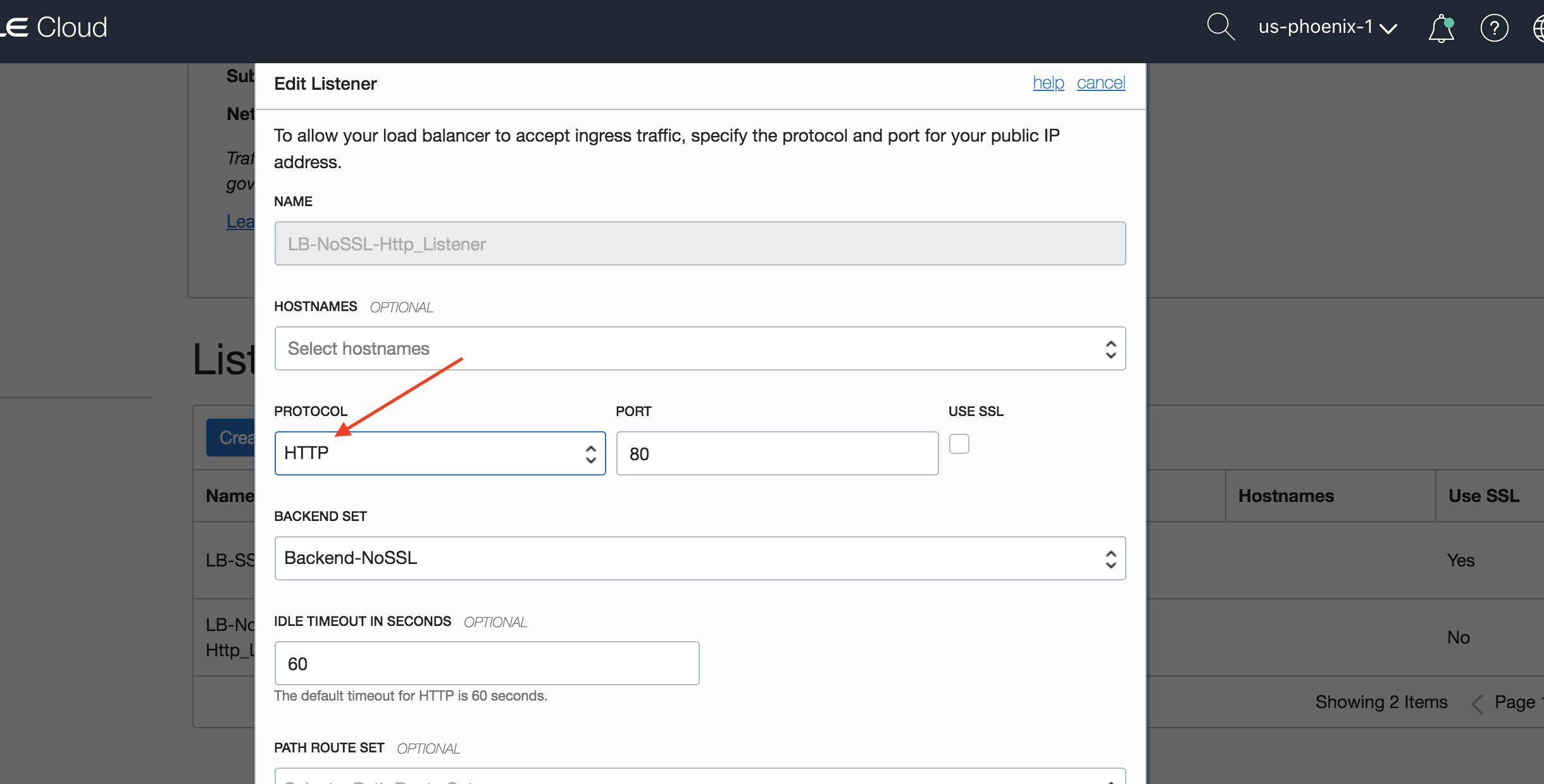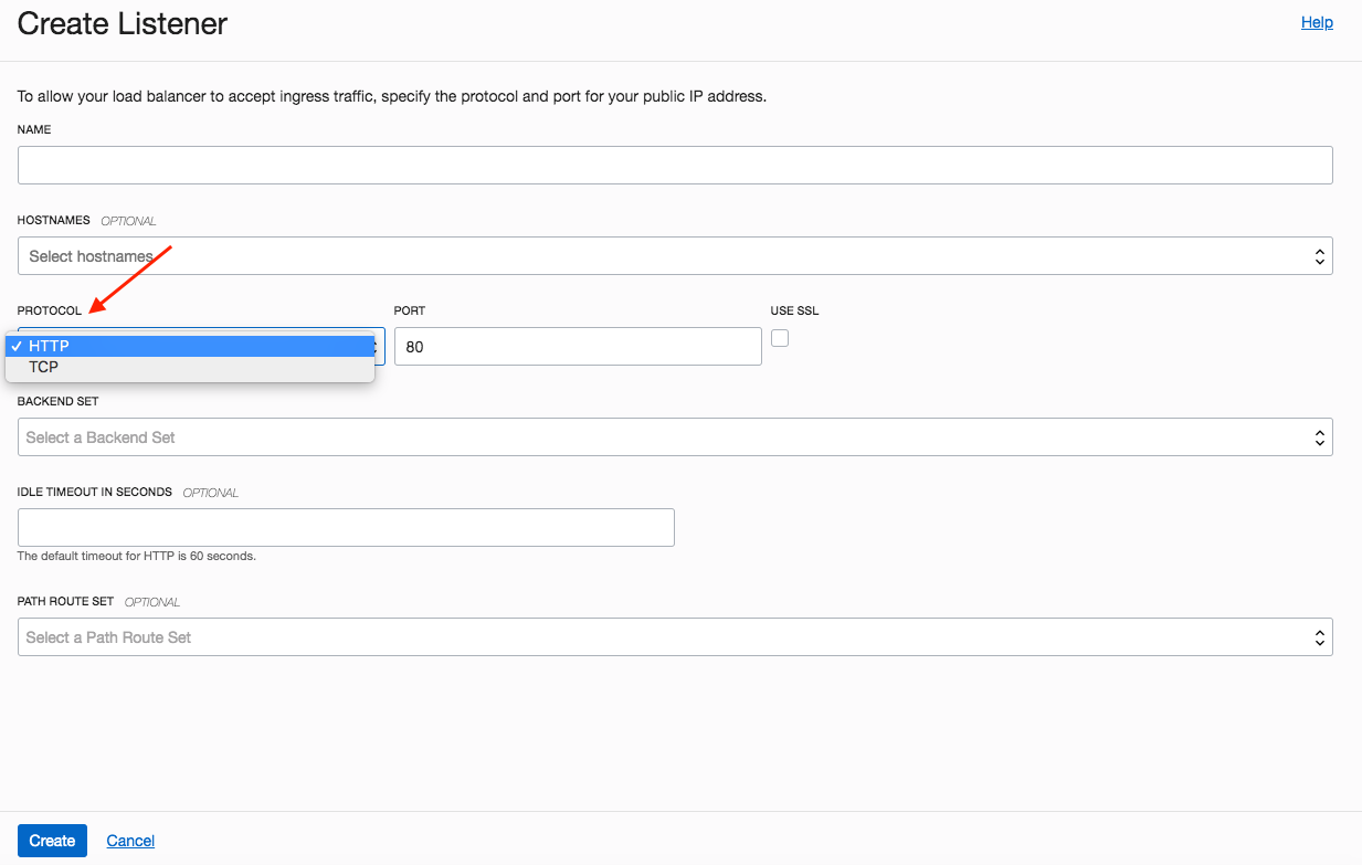 The primary entry point into a Load Balancer for the incoming traffic is a Listener. A Listener is configured to “handle” either HTTP or TCP traffic. This is achieved by choosing either TCP or HTTP as the “Protocol” in the Listener configuration: