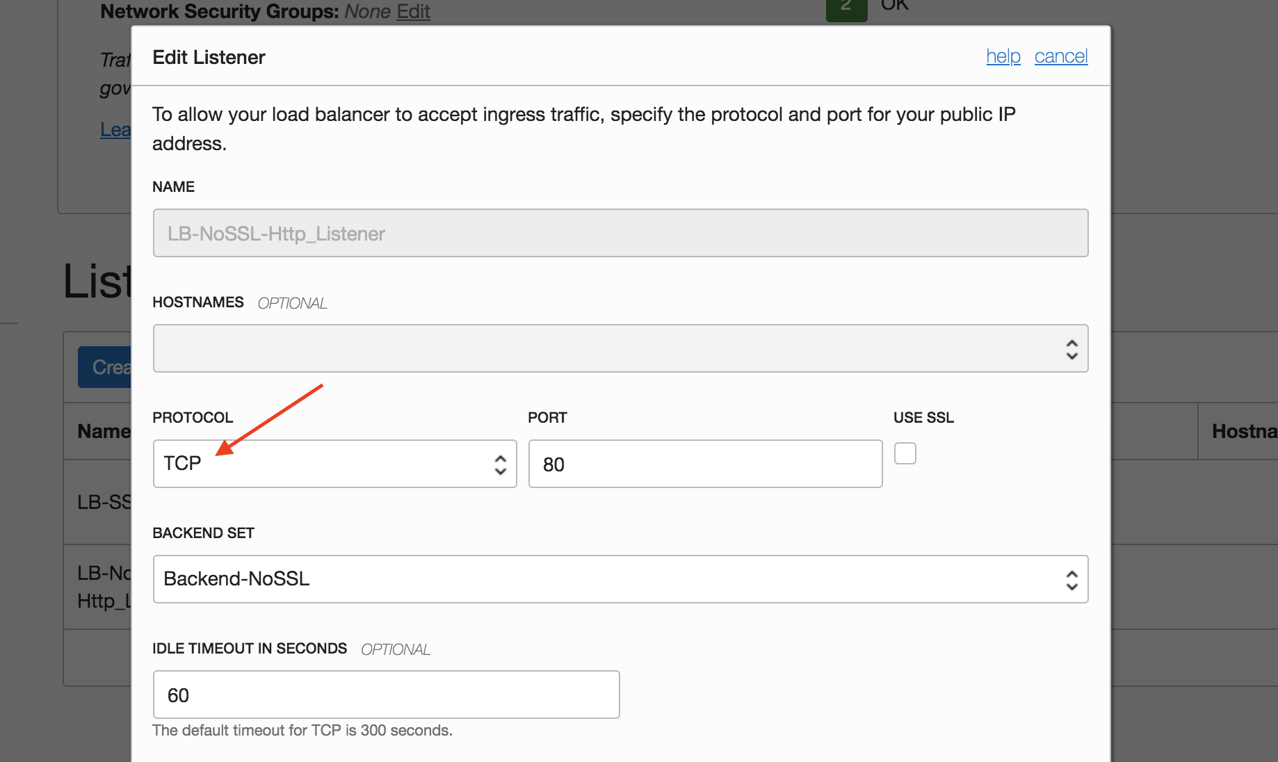 - If SSL is used and a fully encrypted channel is desired between the client (Browser) and the server (Apache), TCP is the choice. This is SSL tunneling mode – http://www.ateam-oracle.com/load-balancing-ssl-traffic-in-oci