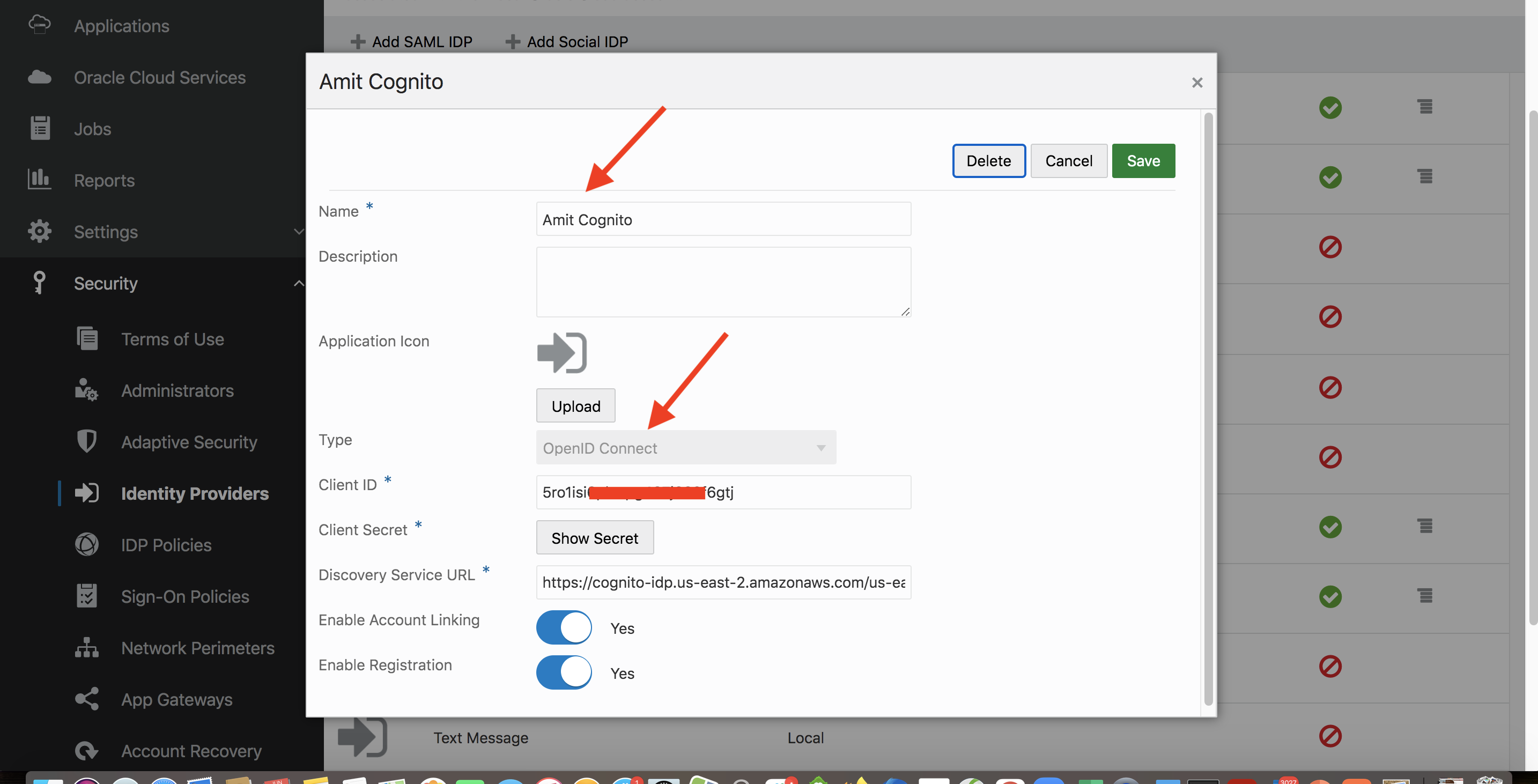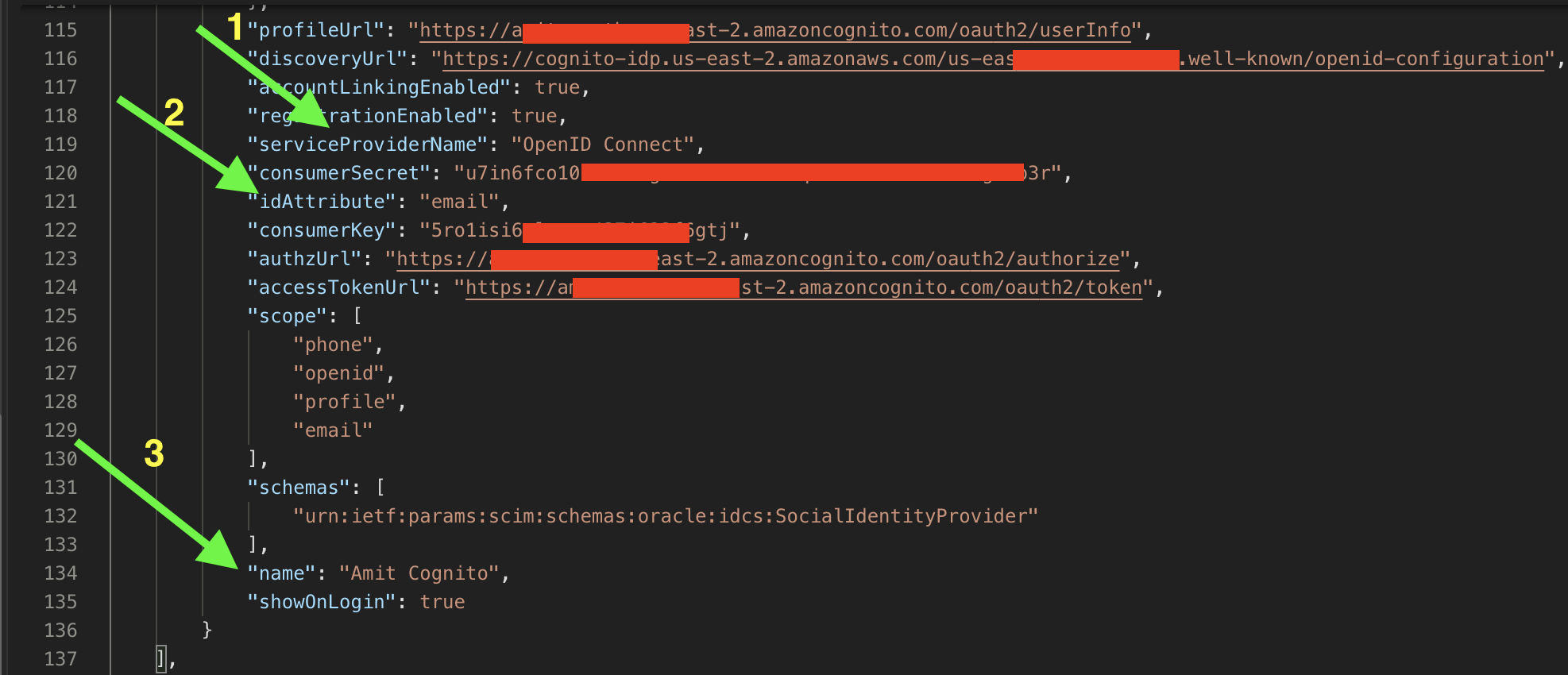 When you create a social identity provider, whether an out-of-the-box or using the generic template, IDCS creates a record for the provider in its configuration store. For example, I have created a provider in IDCS for AWS Cognito using the generic OIDC template. The provider is named “Amit Cognito”.
