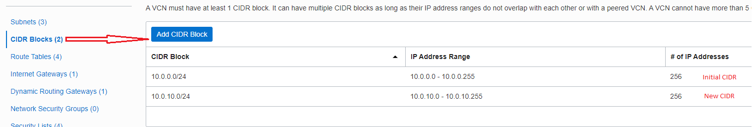 The video below also walks through the process of adding multiple CIDR ranges to an existing VCN: