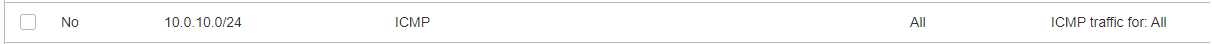 3. On the Security Lists attached to each subnet I have added an entry to permit the ICMP: