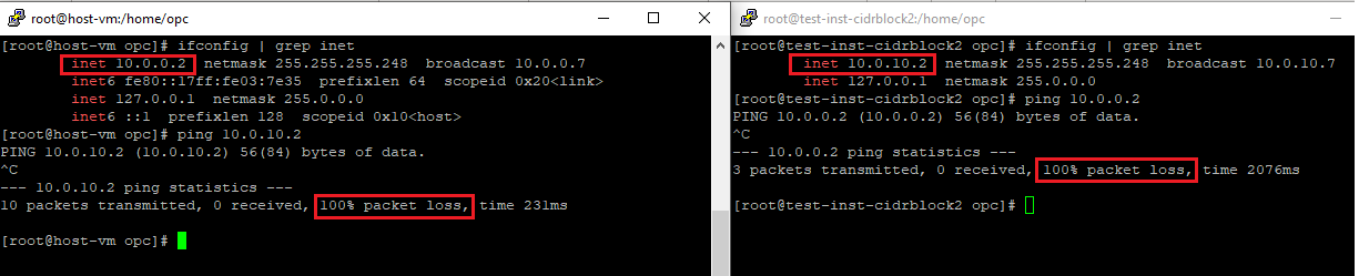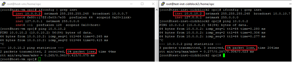 Once we have permitted the traffic in the Security Lists, the connectivity between the two subnets from the existing CIDR and new CIDR has been established.
