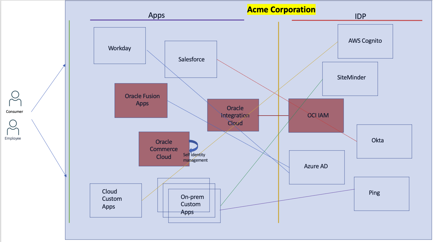 It is not just proliferation of IDPs, even applications are sometimes configured to use their own identity management stacks (Commerce Cloud in Fig 1) instead of federating with an IDP, thus adding to the complexity. The reasons for ending up with the above topology are quite a handful, but we will not delve into them here. However, you can consolidate various identity management solutions into OCI IAM and benefit from its rich and powerful features to secure your applications, both Oracle as well as non-Oracle.
