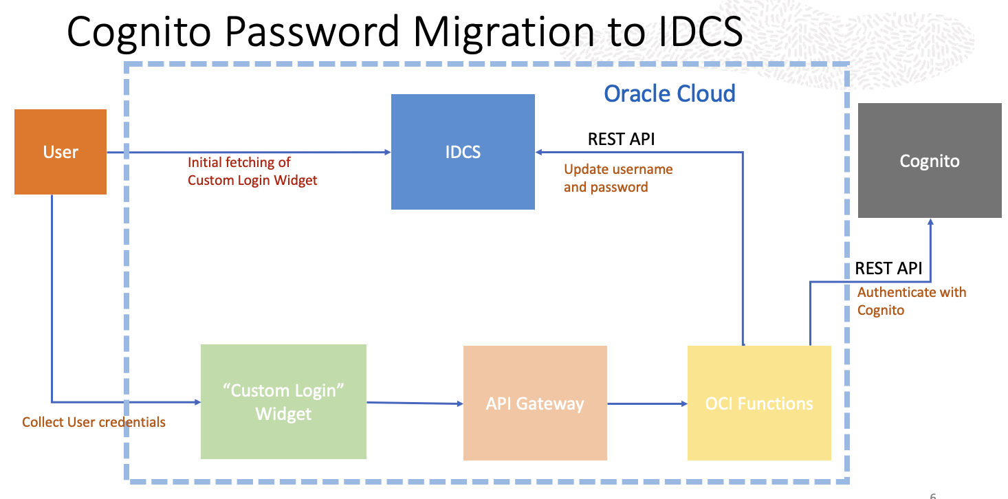 In this blog post we discuss a pattern to migrate users along with their passwords to OCI IAM from different identity management systems. The technique using the Custom Login Widget along with OCI Functions (front-ended by API Gateway) provides a seamless user experience while migrating their passwords to OCI IAM.