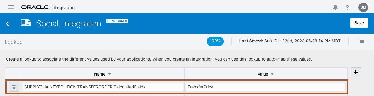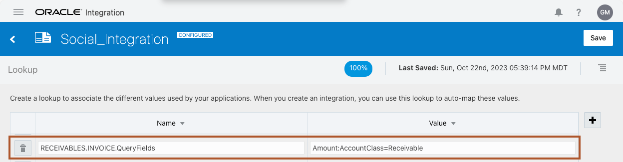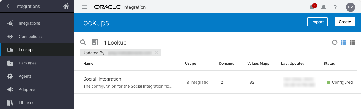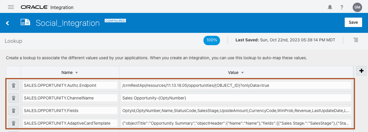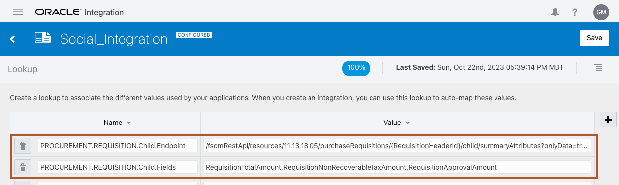 All of the OIC Lookups for the FASNI example can be found in the OIC console under Social_Integration: