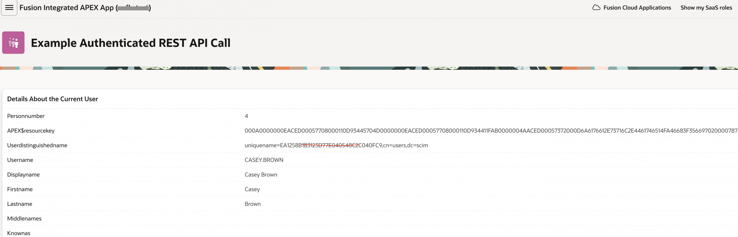 On logging in with a valid Fusion Application user credentials, you should be navigated to the HCM Self details page showing the logged in user details