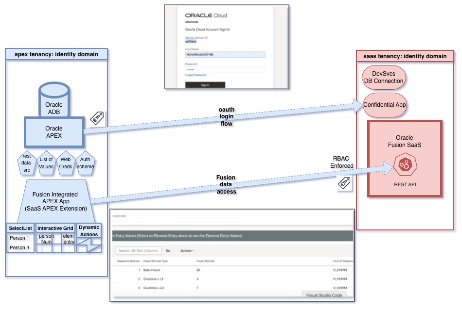 Diagram below depicts the login flow and runtime Fusion applications data access