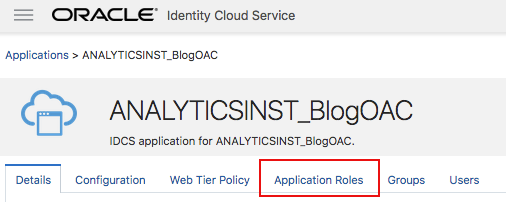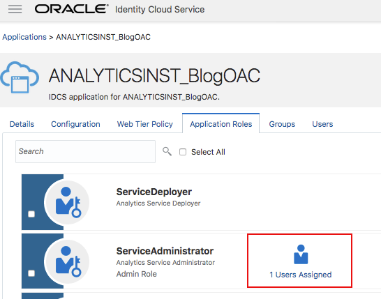 The provisioning process also creates an IDCS application and assigns the provisioning user to the application’s ServiceAdministrator application role.