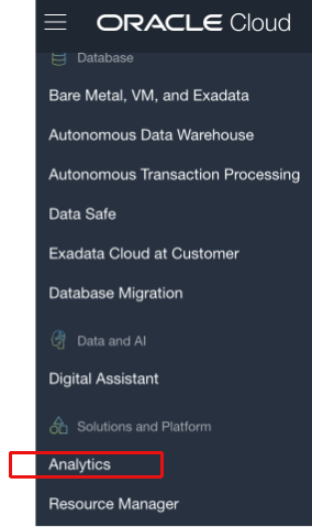 Navigate to the Analytics Cloud. Refer to Navigating to Oracle Cloud Infrastructure Services for documentation.
