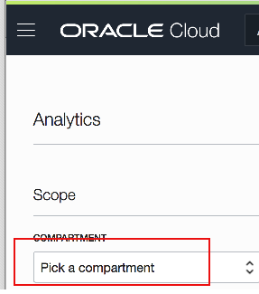From the Compartment dropdown, choose the compartment you have access to for Analytics.