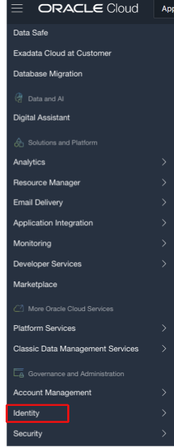 Open the IDCS navigation menu in the upper left   and click Applications
