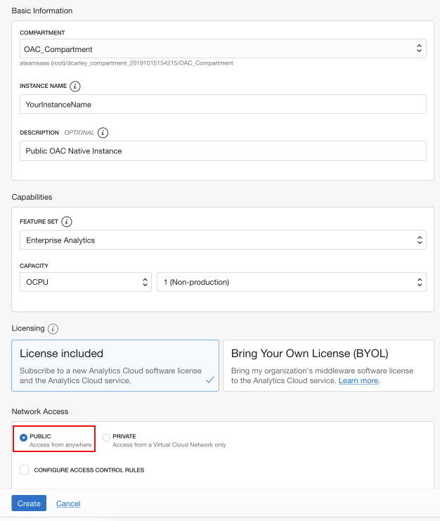 Creating the OAC Instance