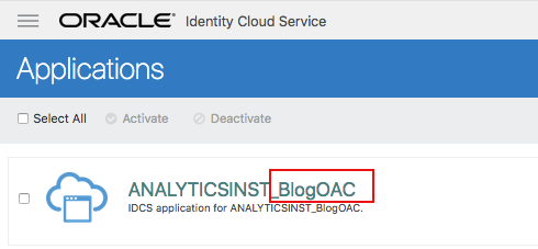 Viewing the OAC Application in IDCS