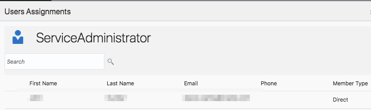 Note the ServiceAdministrator role and click on 1 User Assigned.