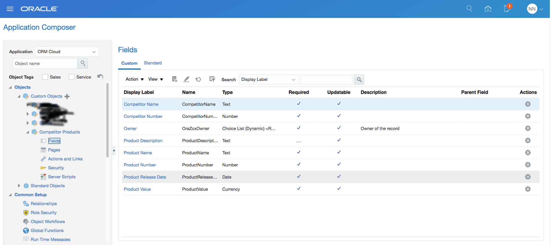 As a practical sample for the usage of a BICC based data extraction for custom objects I’m referring to a business case from one of my previous blogs. One standalone custom object will be created to represent the knowledge about any competitor products. Another object will be created as a child object to Accounts to carry the information about competitors installed base at this customer.