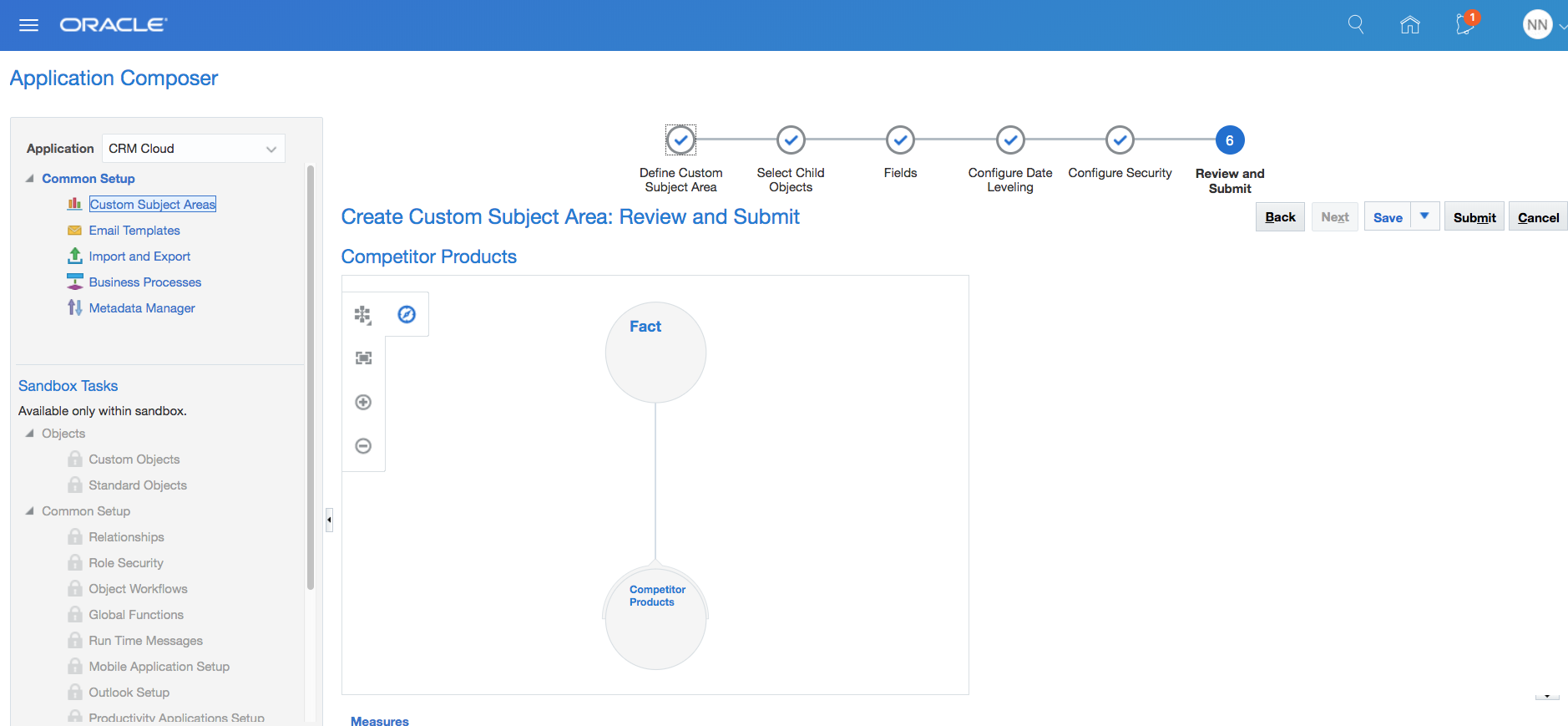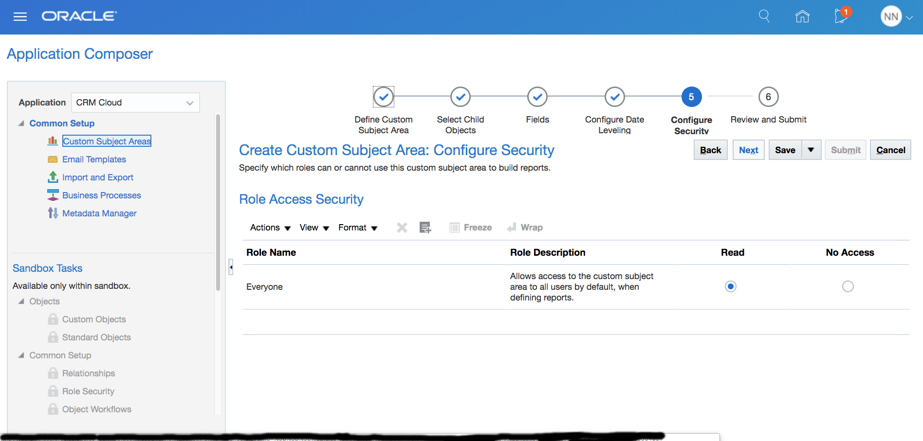 Important: Once the custom object registration has been finished the sandbox must be published before we can do the next step and register Custom Subject Areas. These custom objects won’t be visible in Custom Subject Area unless published.