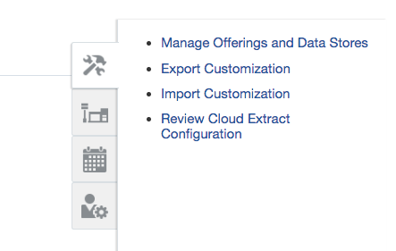 This task starts opening the page for management of offerings and data stores as it can be found in the menu tab as shown below.